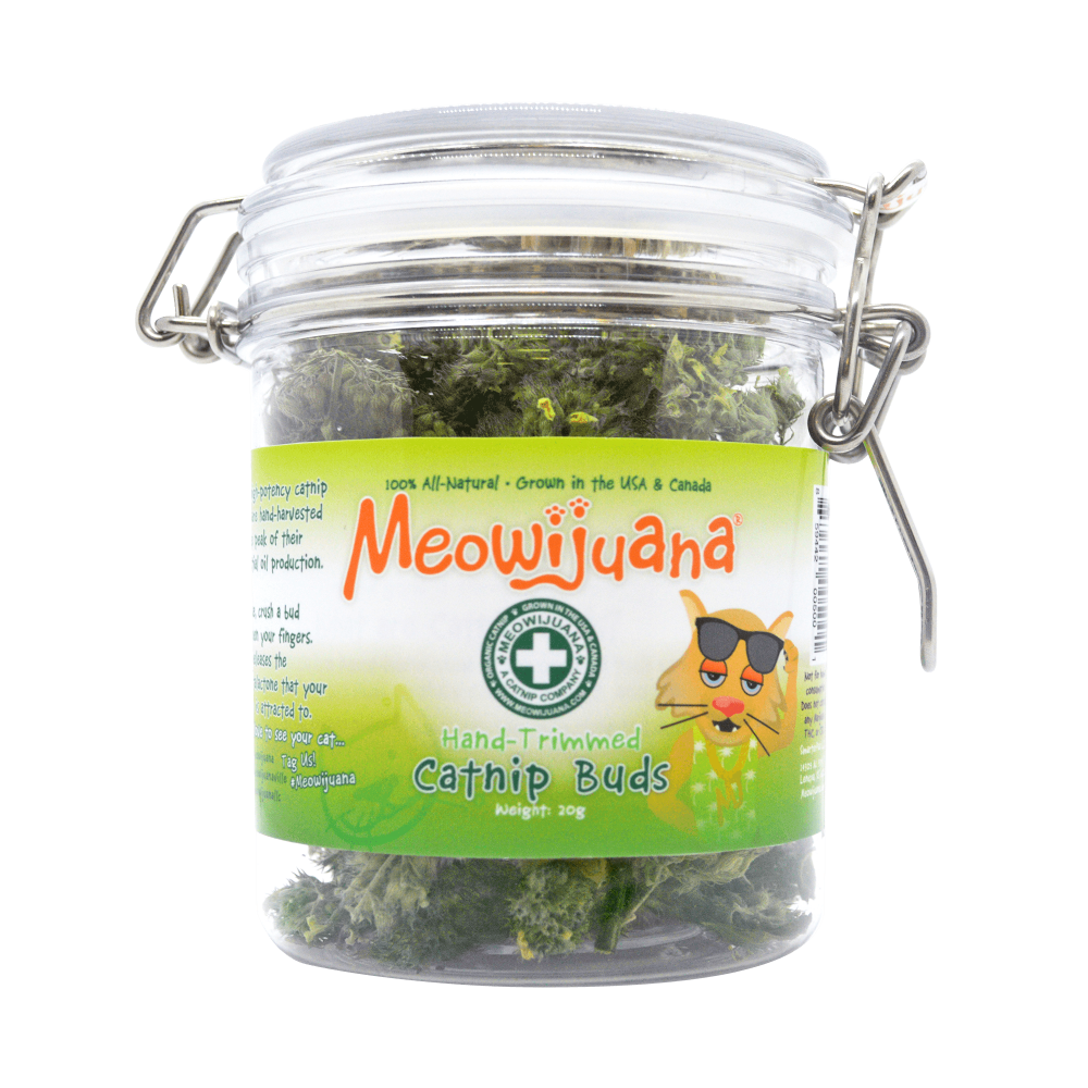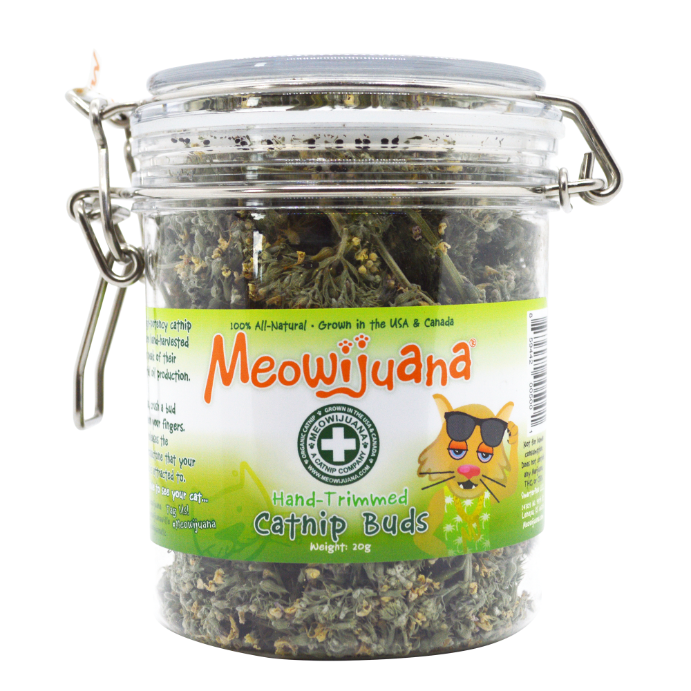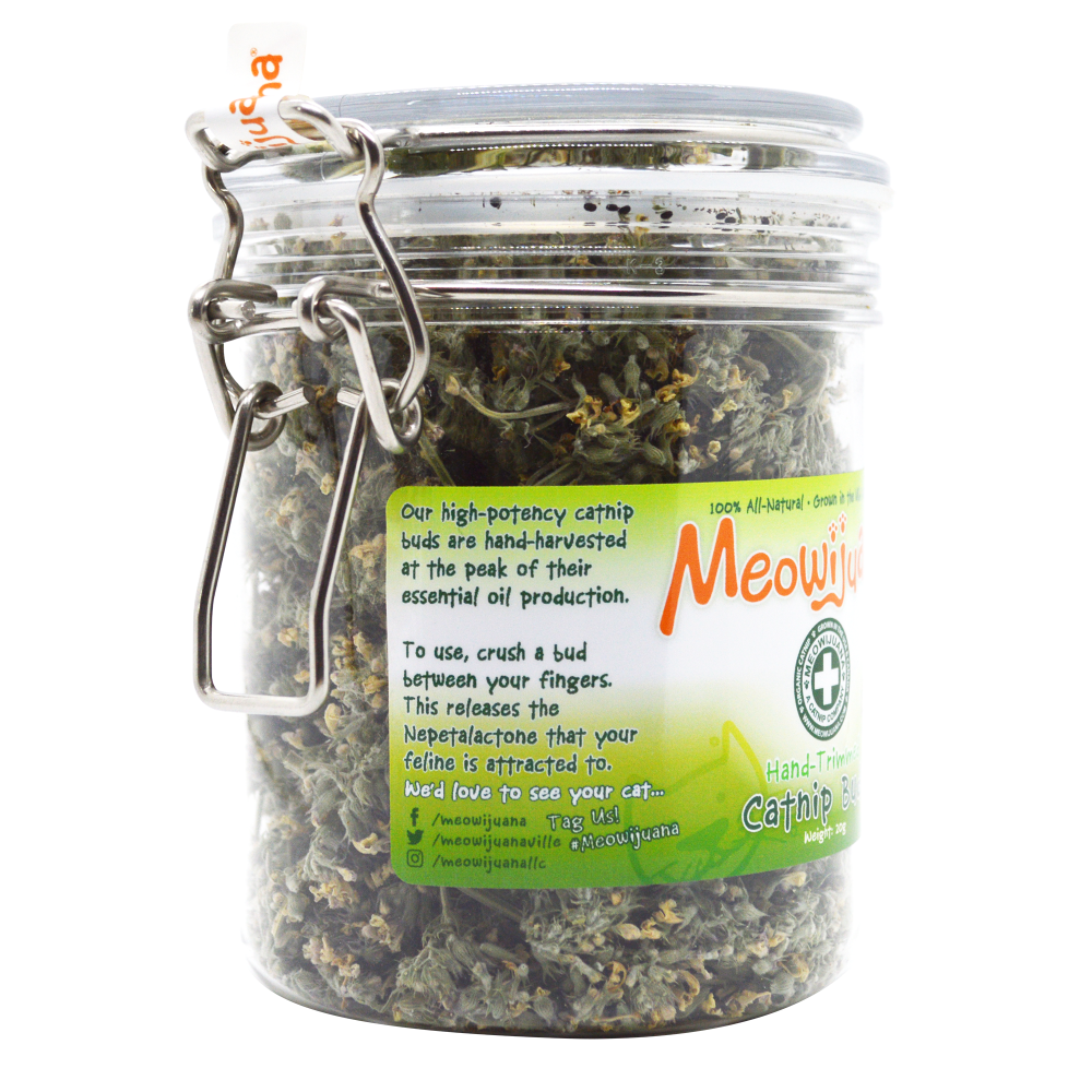 These handy, reusable jars are stuffed with buds of premium catnip-easy to store, and easy to keep out of your kitty's paws until you say so. Catnip is collected only at the highest point of its essential oil production for the ultimate, fragrant experience for your cat.