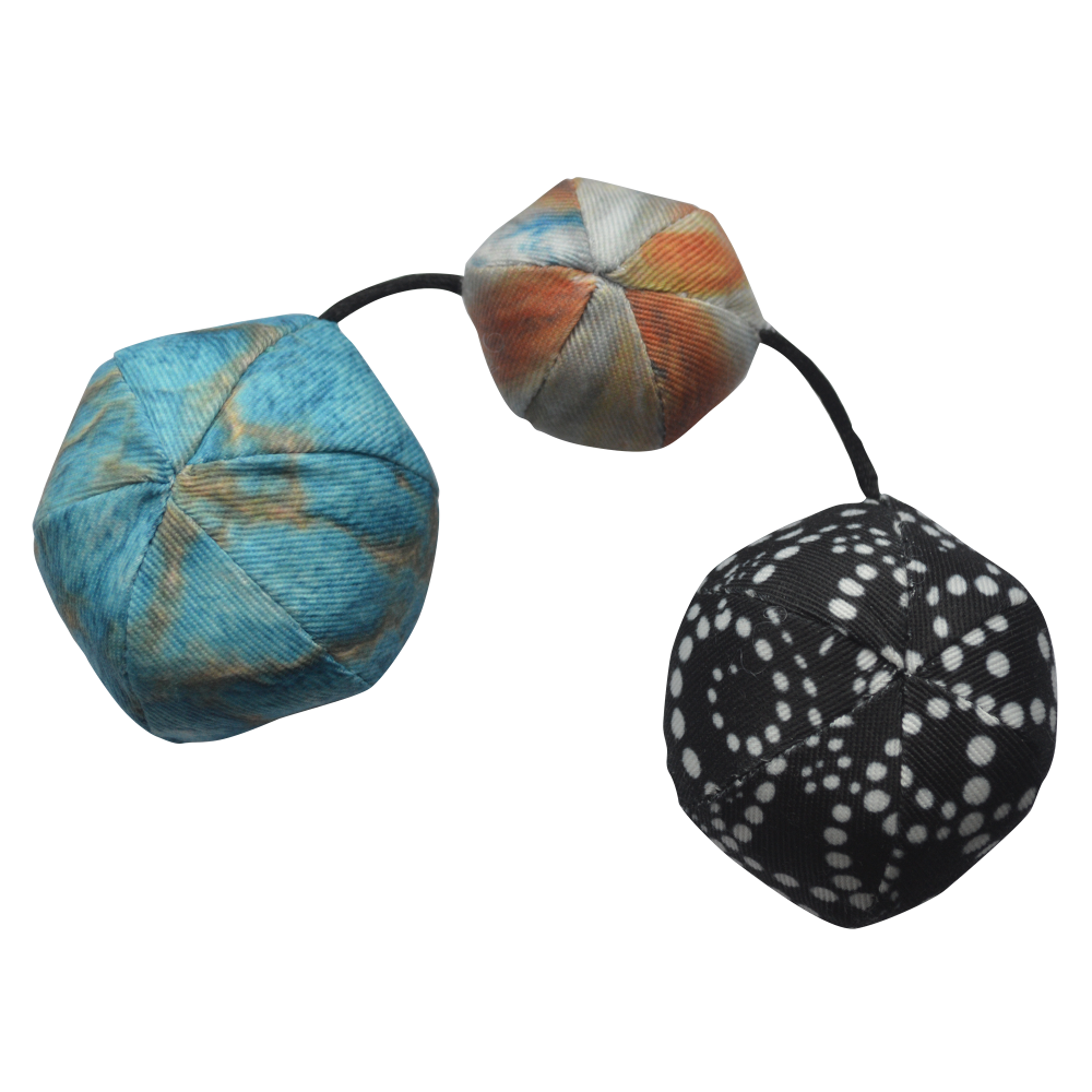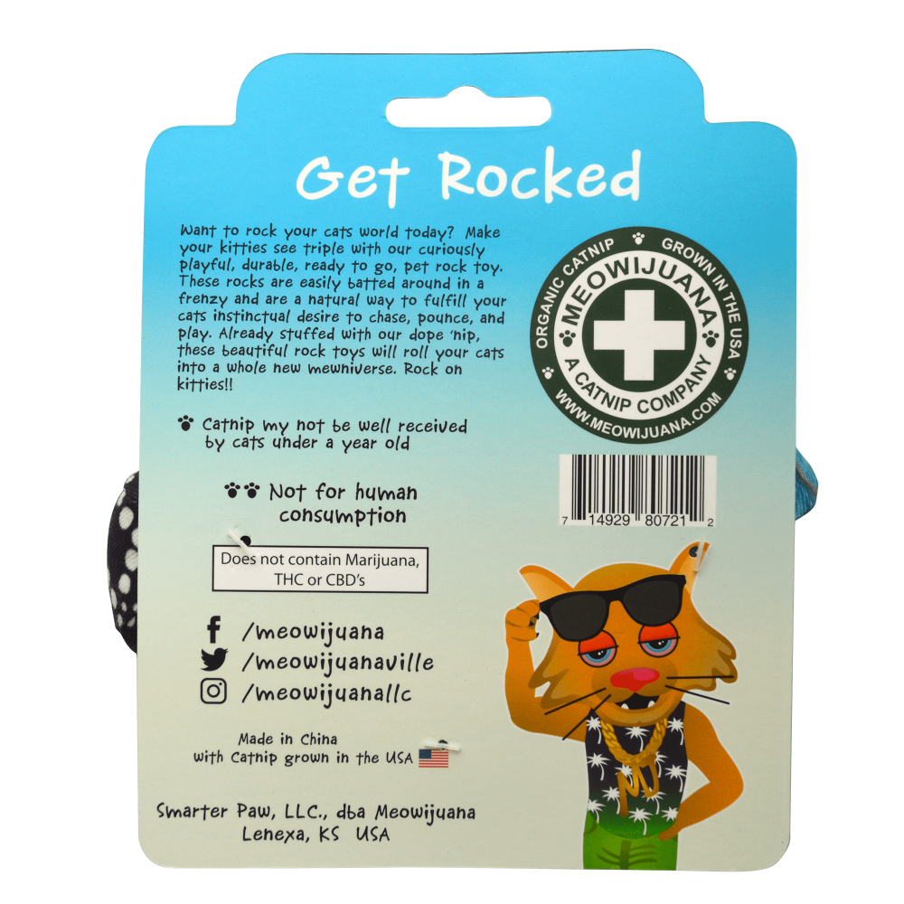 Want to rock your cat's world today? Make your kitty see triple with our curiously playful, durable, ready to go, string of stones toy. These rocks are easily batted around in a frenzy and are a natural way to fulfill your cat's instinctual desire to chase, pounce, and play. Already stuffed with our dope 'nip, these rocks will roll your cat into a whole new mewniverse. Rock on kitties!!