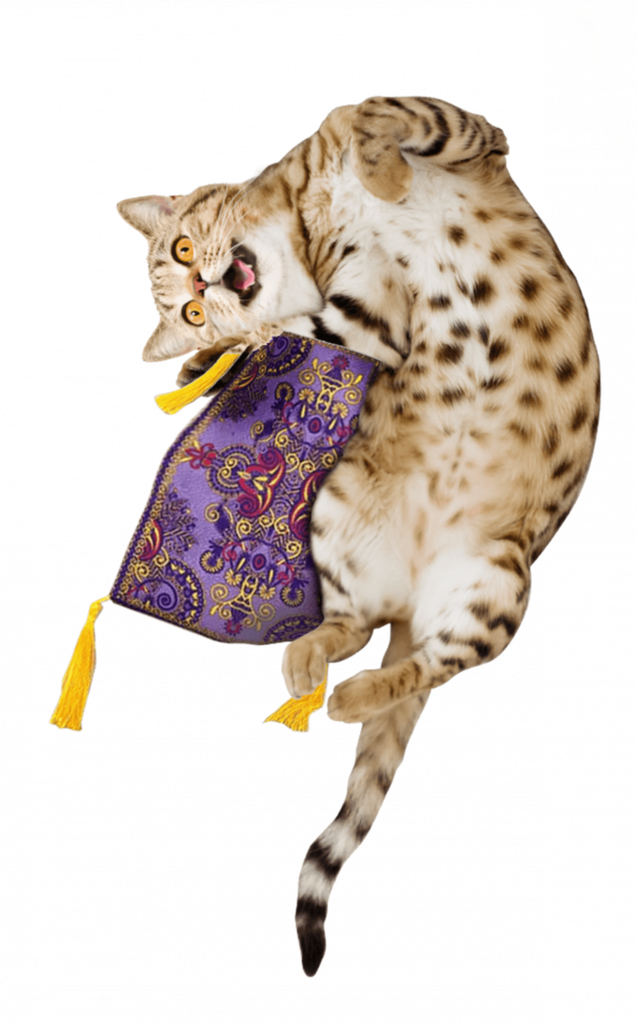Every cat deserves to Get a Ride on our magic carpet. After all, they put up with us humans getting in their faces for pictures, dressing them up for holidays, and non-stop cuddles. Simply tuck some of our dope 'nip into the pocket on the side of this carpet and watch the magic.