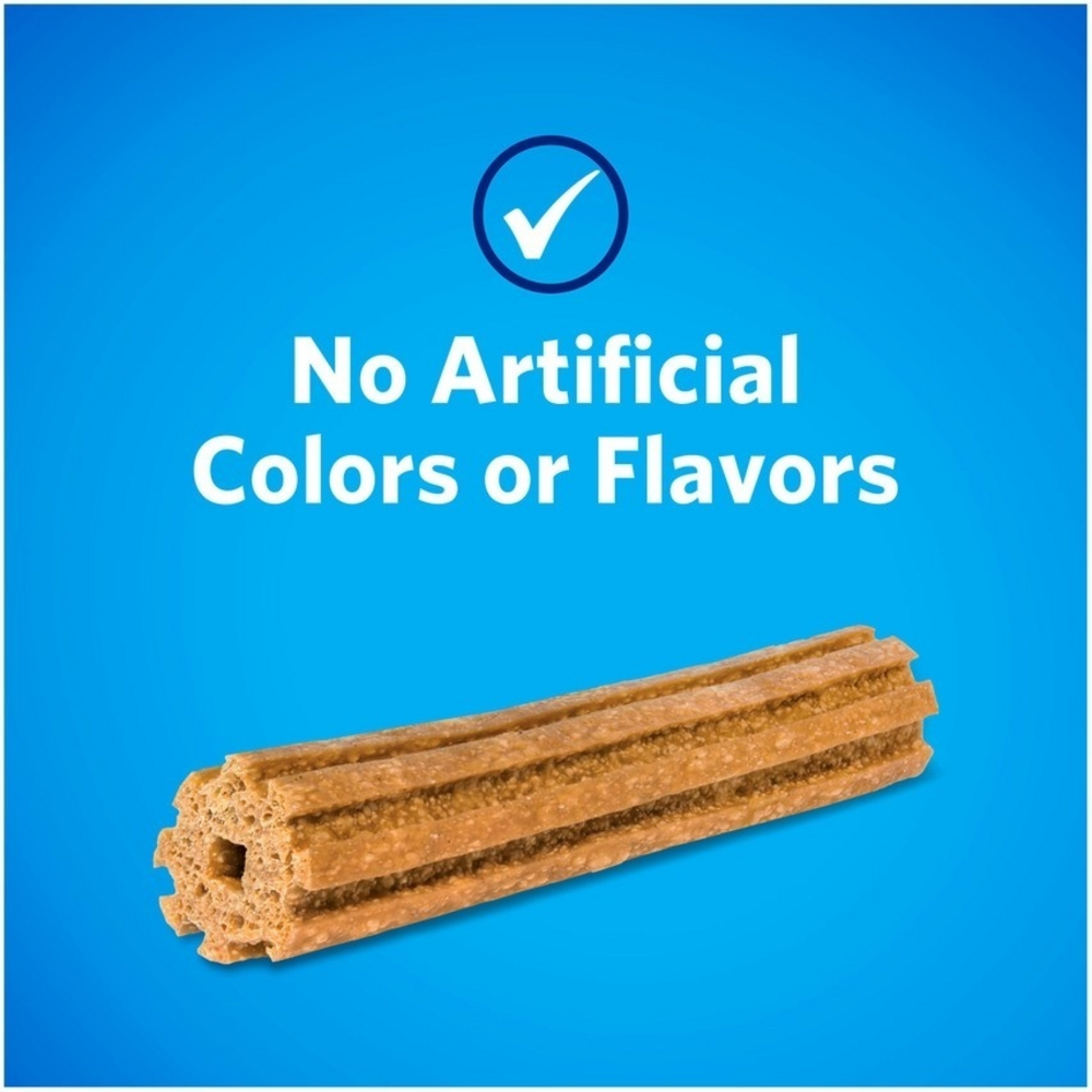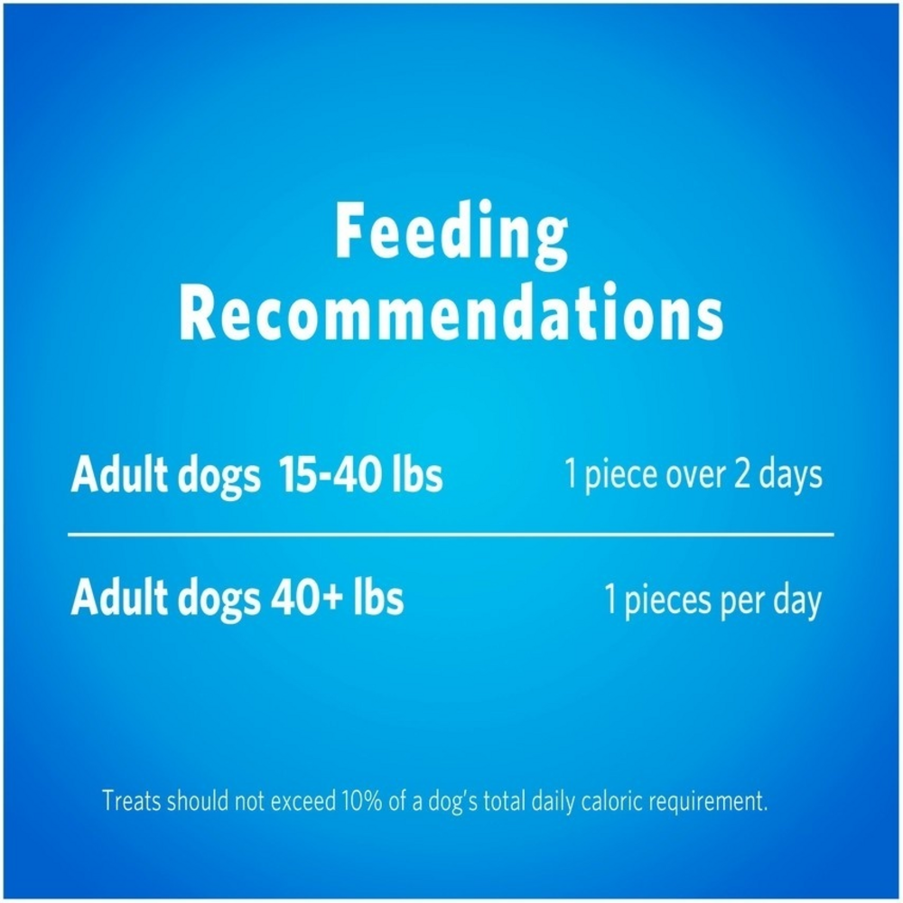 Part of caring for your dog's health is helping him to maintain healthy teeth, and Purina DentaLife Daily Oral Care large adult dog treats help clean his teeth. The tasty chicken flavor keeps him excited about snack time, while the wholesome ingredients let you feel good about serving these treats to your dog. With a formula that's scientifically tested to reduce tartar buildup, these VOHC (Veterinary Oral Health Council) accepted treats help to deliver a breakthrough clean that's sure to keep you both smiling. The innovative design, which contains eight distinct ridges plus thousands of air pockets that produce a porous, chewy texture, cleans his teeth right down to the gumline. Featuring a large size designed with large dogs in mind, this Purina DentaLife variety is a smart choice for your big dog. Let him know you care about his teeth every time you reach for a pouch, and support his smile throughout a long, healthy life together.Taking care of your dog's dental needs includes providing for his daily oral care, and Purina DentaLife Daily Oral Care large adult dog treats help you keep your large dog's teeth clean and his breath fresh. We craft this DentaLife recipe without artificial flavors or colors, so your dog gets wholesome ingredients in a chewy treat designed to deliver a breakthrough clean. These adult dog treats are packaged in a convenient resealable pouch, helping to preserve freshness so that each treat is ready whenever your dog is. Our satisfaction guarantee (see package for details) provides extra reassurance every time you reach for one of these VOHC Accepted adult dog treats. Follow the provided feeding instructions based on your dog's size, and offer him these tasty chicken-flavored snacks in addition to his complete and balanced diet and brushing to help him maintain a smile he can be proud of. For households with multiple dogs both big and small, explore our complete line of Purina DentaLife adult dog treats to find the right size for each of your family's faithful friends. At Purina, we know quality is important to dog owners, and that's why we strive to make quality the top priority in everything we do. These adult dog treats are crafted at our facility in Dunkirk, New York, so you know where his snacks are made, and each batch undergoes checks for safety and quality, giving you added peace of mind every time you reach for a pouch. Rest assured knowing that the science behind these treats is backed by the over 90 years of research and commitment that Purina brings to helping make pets' lives better. For clean teeth throughout a long, healthy life together, choose Purina DentaLife Daily Oral Care large adult dog treats for your large-sized dog.