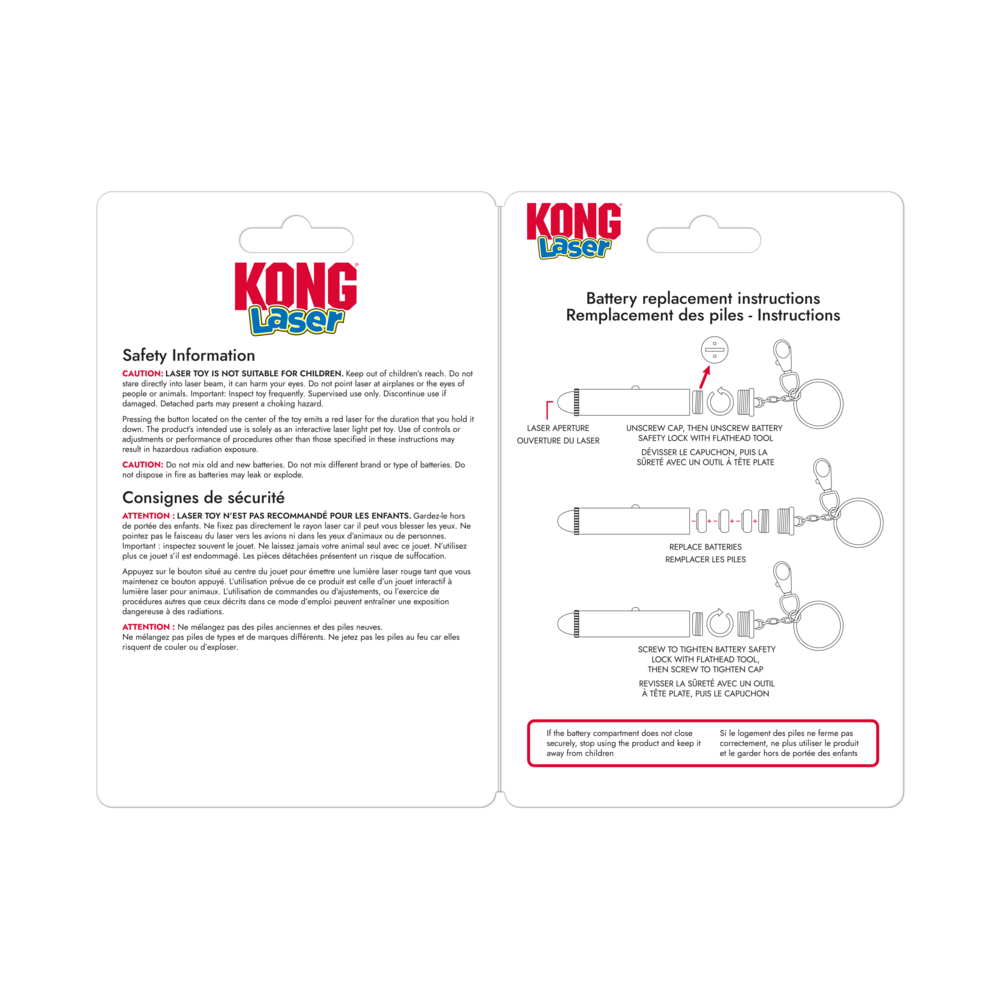 The KONG Laser helps facilitate interactive play sessions and provides endless fun. Point the laser at the floor or wall and let your cat chase and attempt to capture its elusive prey.
