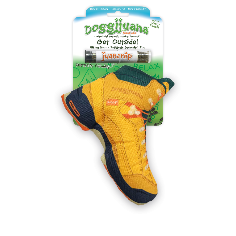 Juananip has a calming effect on dogs. It relaxes them to a place of peace and tranquility they all crave. Doggijuana perfected a really great delivery system for our Juananip with our refillable, fun toys made for pawtiers. Enjoy some right now with our Refillable Get Outdoors Hiking Boot Toy. Stuff a pinch into the pouch for a healthy hand tossed play session that will curb natural play instincts easing your dog into doggi-vana. Play Longer.