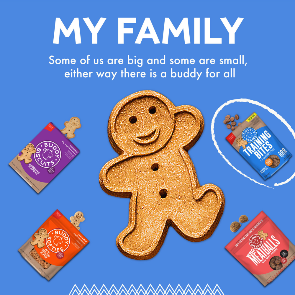Buddy Trainers Training Bites with natural bacon are the perfect training treat to reward and motivate your dog. There are over 500 treats in every bag and each piece is highly palatable with a pork liver base and only 1.5 calories. Buddy makes training a breeze