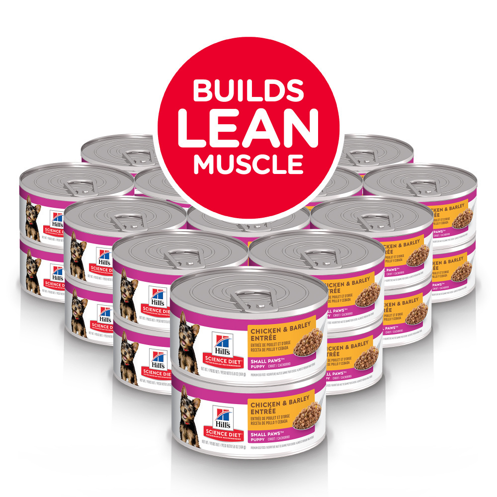 Hill's Science Diet Puppy Small & Mini Beef & Barley Entree dog food is tailored nutrition for the developmental needs of Small & Mini puppies, so they get the best start in life & grow to their full potential. Small breed dog food containing high quality ingredients to ensure availability of key nutrients and proteins for the healthy development of your puppy. High-quality protein for building lean muscles. Made with purposeful ingredients for a flavorful, nutritious meal. Easy to digest. Contains Hill's special Small & Mini antioxidant blend for lifelong immune support. Big on Love, Small in Size.