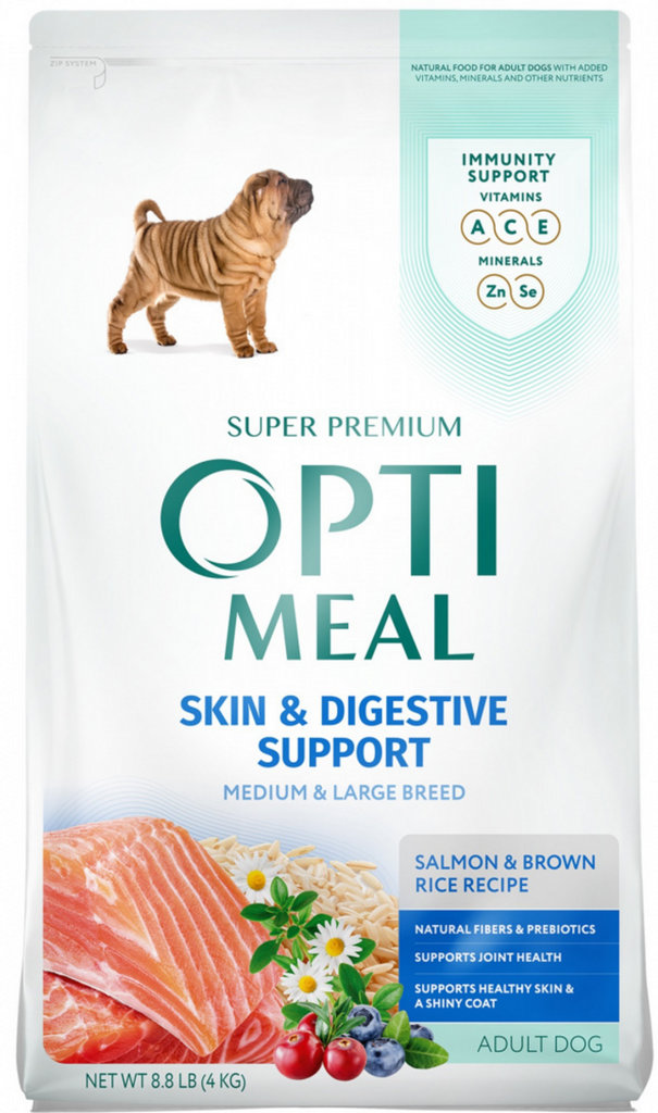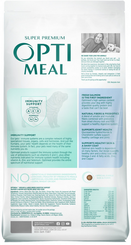 Salmon is a highly digestible quality protein that dogs love. It?s the first ingredient in our Salmon & Brown Rice Recipe, to which we add berries, prebiotic FOS, vitamins, minerals, and other natural nutrients to build bone, muscle, and energy. It has great immune system support and is guaranteed to satisfy your medium or large breed dog.