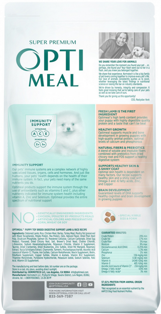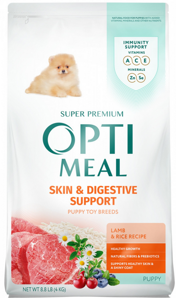 Optimeal Puppy Toy Breed Skin & Digestive Support Lamb & Rice Recipe Dry Dog Food