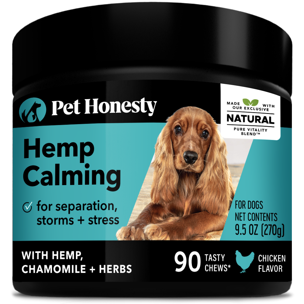 Pet Honestys Hemp Calming soft chews can help your pup deal with stressful situations Whether your dog gets nervous with car rides vet visits thunderstorms or being away from you these delicious Hemp Calming soft chews are formulated to help calm and soothe her Powered by healthy ingredients that naturally promote calmness like hemp ashwagandha and chamomile these vet recommended supplements can help you and your pup rest easy