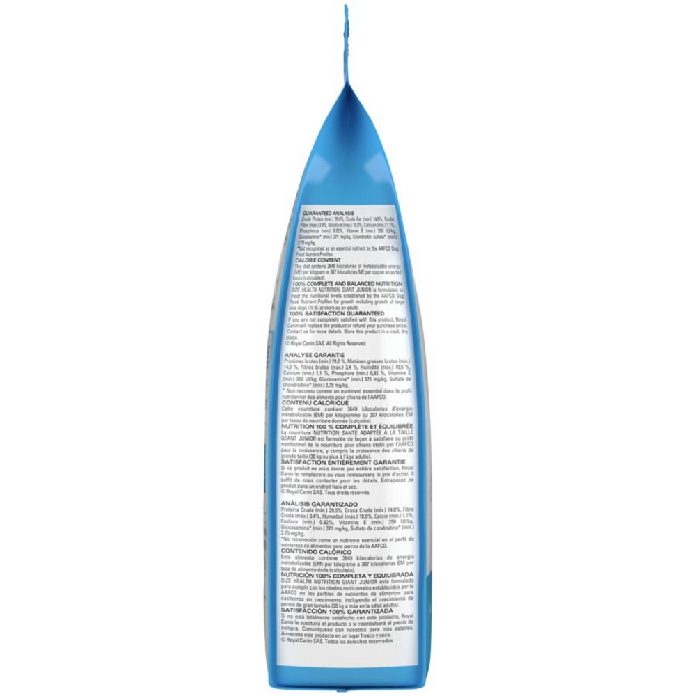 With countless dog food options out there with formulas focused on ingredients, how do you know what’s right for your growing puppy? No matter how big or small your pup becomes, Royal Canin has a right-sized diet, made with the precise amount of nutrients needed for every stage of their magnificent future.Your giant puppy is destined for big things—and as they grow, they have big nutritional needs. Giant breed dogs have the longest growth period out of other sized dogs—that’s why Royal Canin growth formulas for giant-sized dogs come in two stages: Giant Puppy and Giant Junior. This Giant Junior dry dog food diet is made specifically for that second stage of growth. At around 8 months, they start to fill out their long and lanky body, developing muscles to support their large frame long into adulthood. What you feed them now sets them up for a healthy, happy life as an adult. Royal Canin Giant Junior is a nutrient-dense diet formulated for your puppy’s healthy growth: Adapted protein levels and added L-carnitine help build strong muscles. Balanced energy content and precise amounts of calcium and phosphorus support healthy bones and joints. Highly digestible proteins and prebiotics promote healthy digestion and optimal stool quality. Key antioxidants and minerals support developing immune systems to help your dog keep growing strong. Transitioning from Royal Canin Giant Puppy to Giant Junior is easy, because both formulas have an exclusive kibble designed specifically for these growing dogs’ large jaws, so they chew their kibble thoroughly. With the targeted nutrition of Royal Canin, your lovable giant can grow up and live their best, most magnificent life. With nearly 50 years of scientific research and observation, Royal Canin continues to deliver targeted nutrition to feed every pet’s magnificence. Not satisfied? Then neither are we. Our formulas are 100% satisfaction guaranteed.