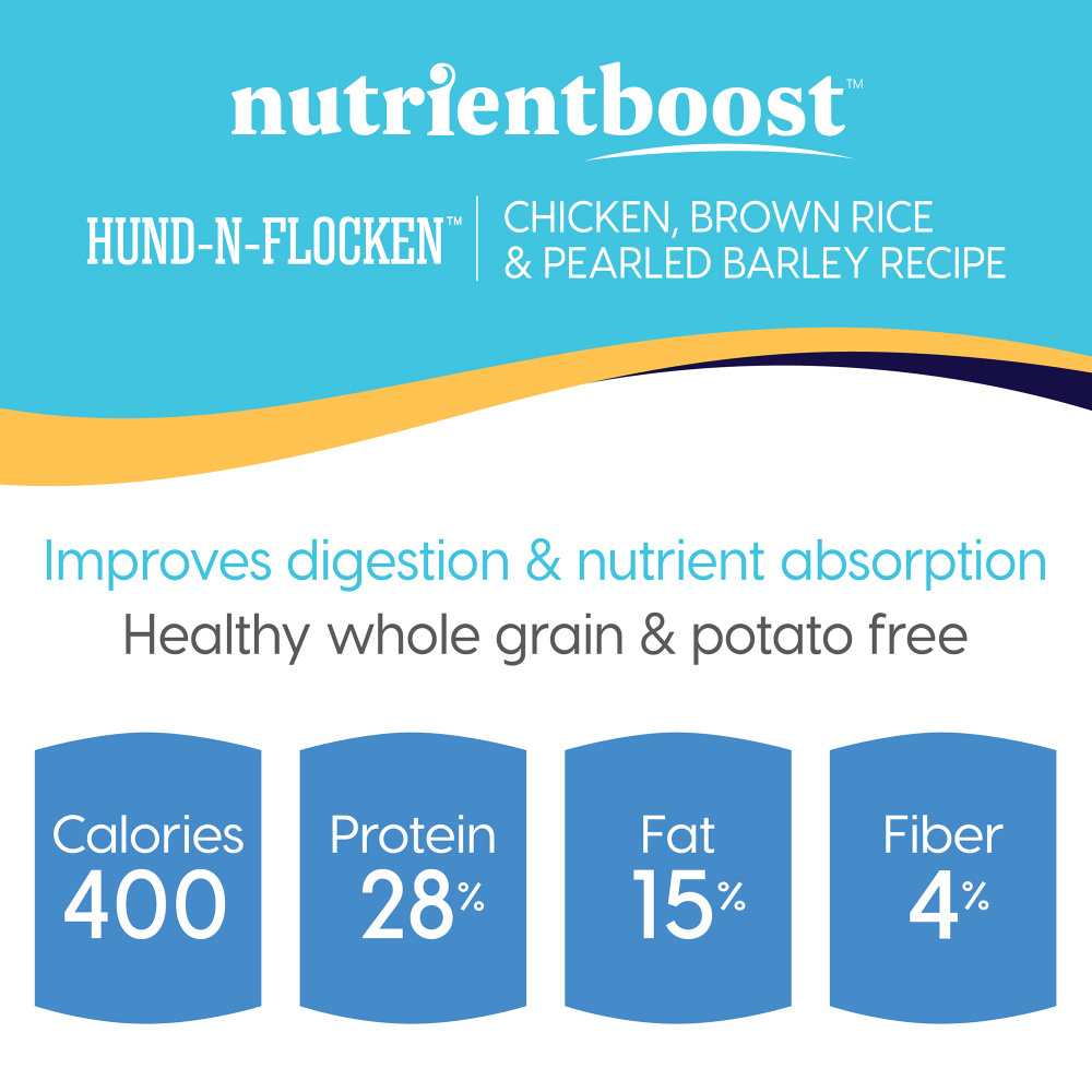 Hund-N-Flocken holds a special place in our hearts. Its ingredients - and funny sounding name - were inspired by our founder, Sissy McGill. Hund-N-Flocken was Sissy's 1st Recipe, and it has proudly supported the health and vitality of dogs since 1974. Today, this recipe still provides the best natural nutrient profile derived from cage free chicken, healthy whole grains, and our unique blend of nutritious superfoods, living probiotics and rich omegas to promote gut health and overall immune support!