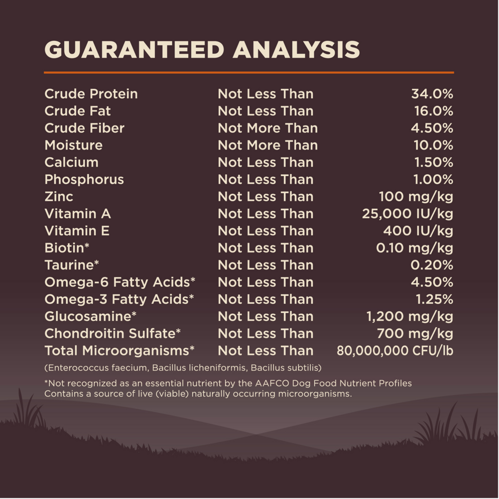 CORE recipes are crafted based on the nutritional philosophy that dogs, based on their primal ancestry, thrive on a natural diet mainly comprised of meat. Our Protein-Rich Wholesome Grains dry dog food is packed with premium protein along with nutrient-rich superfoods and nutritional supplements to ensure your dog has everything they need to thrive from the CORE.