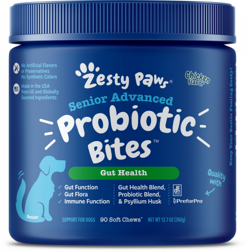 Some dogs (older seniors or not) need a little extra gut support with probiotics and prebiotics. So, it's only natural that pet parents would want a helping hand. But, don't be upset. All is well, because Advanced Probiotic Bites are chews that feature premium Pre and Probiotics, a special Gut Health Blend, and Psyllium Husk. Together, these pawsome ingredients support dogs with normal bowel and digestion expectations, along with immunity support. You'll enjoy the daily relief of giving your doggie a great outlook for their gut, bowel, and immune function. Seeing their tail wagging to the max will be quite a treat for you, no doubt! Plus, we know your pet has an allergy to bad flavors. So, your dog will feel happy and spoiled well with all the best special treatment thanks to Probiotic Bites' good taste that hits the spot. That way, they'll keep feeling good and zesty, which treats us to even more fun and fond memories!
