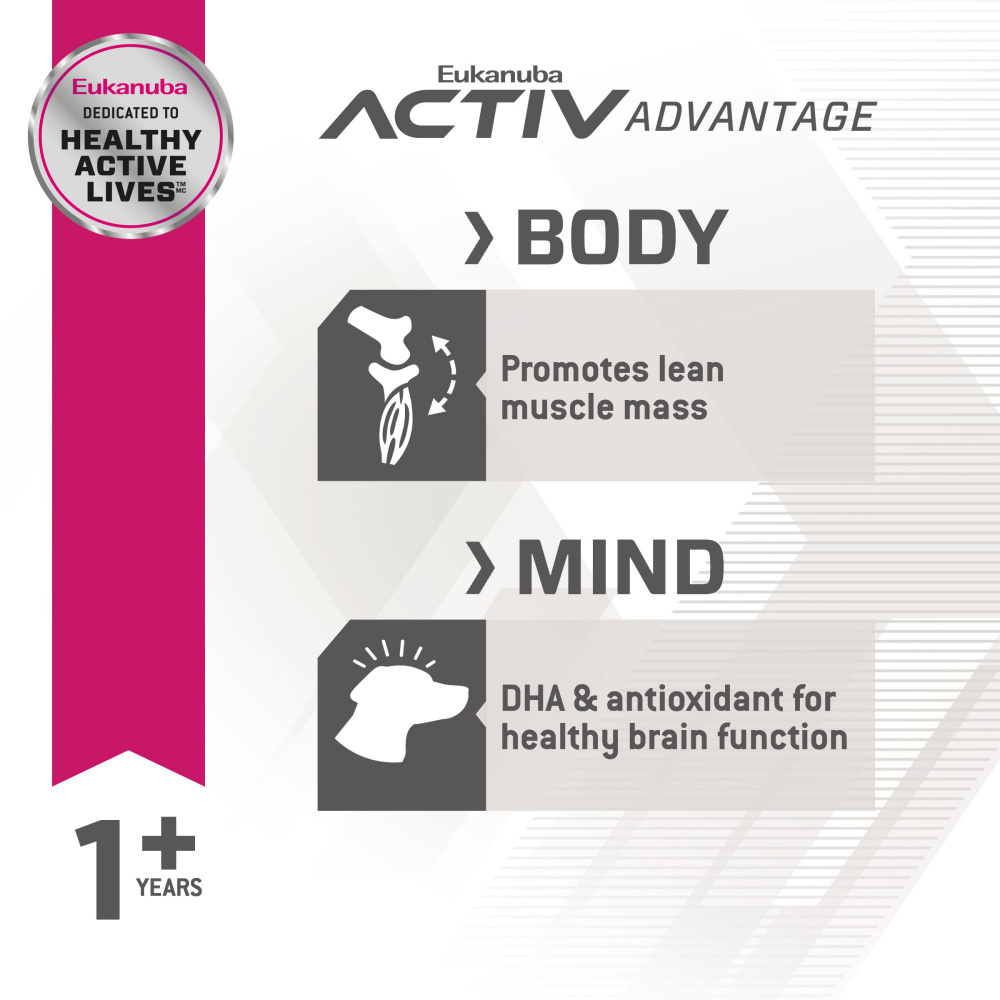 • SUPPORTS ACTIVE DOGS: Over 50% more glucosamine (vs. Eukanuba Adult Medium Breed Dry Dog Food) and chondroitin sulfate help support lean muscles and joint health in your big dog.