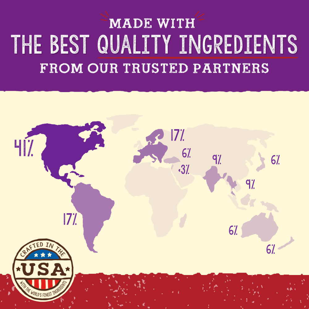 Beef, beef heart, beef kidney, beef liver, beef tripe, beef bone, potassium chloride, sodium phosphate, choline chloride, dried Pediococcus acidilactici fermentation product, dried Lactobacillus acidophilus fermentation product, dried Bifidobacterium longum fermentation product, dried Bacillus coagulans fermentation product, taurine, tocopherols (preservative), dandelion greens, fenugreek seed, salt, dried kelp, tricalcium phosphate, calcium carbonate, zinc proteinate, iron proteinate, vitamin A supplement, vitamin E supplement, niacin supplement, copper proteinate, magnesium sulfate, riboflavin supplement, sodium selenite, d-calcium pantothenate, biotin, manganese proteinate, thiamine mononitrate, pyridoxine hydrochloride, vitamin D3 supplement, folic acid, vitamin B12 supplement.