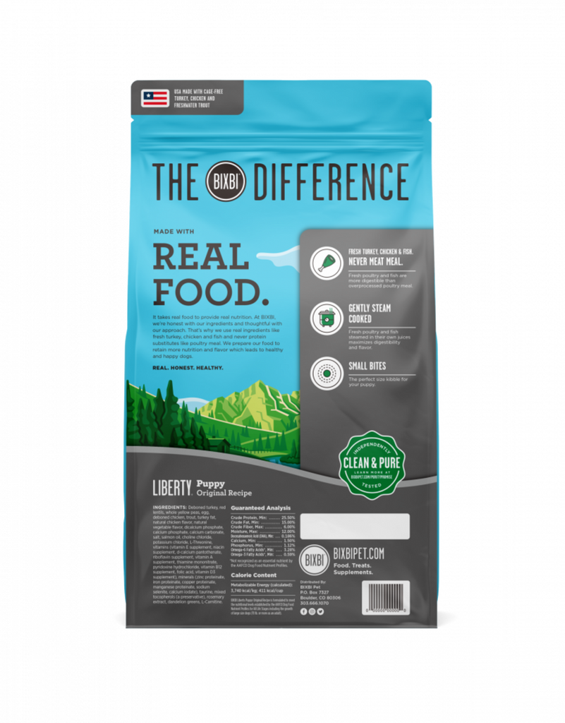 LIBERTY Dry Food for Dogs delivers fresh meat nutrition at a price everyone can enjoy. LIBERTY starts with fresh turkey, chicken and fish and adds whole ingredients, never cheap fillers like chicken meal or fish meal. Fresh meat for everyone!
