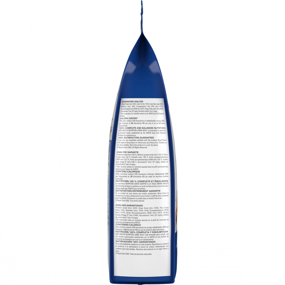 With countless dog food options out there that feature formulas focused on ingredients, how do you know what nutrition is right for your pet? No matter how big or small your dog is, Royal Canin has a right-sized diet, made with the precise amount of nutrients needed for every stage of their magnificent long life.Large breed dogs are treasured for being hard working animals and loyal family companions. Whether they’re on the job or playing in the backyard, they lead active lives. Their large bodies benefit from a size-specific diet that can support them with the energy they need, to maintain strong joints, and nourish a healthy skin and coat.Royal Canin Large Adult dry dog food (formerly Maxi Adult) is tailored to support your big dog’s active lifestyle. This exclusive formula contains an optimal balance of high-quality proteins and fiber for optimal energy and digestive health. And because large breed dogs put a lot of stress on their bones and joints, key nutrients are included to help keep them playing. Omega-3 fatty acids, EPA and DHA, help promote your dog’s coat and skin health. Plus, this diet’s exclusive kibble is designed for large jaws, with a palatability that’s sure to please. Add some variety to their bowl with Royal Canin Adult wet dog food. And when your dog reaches 5 years old, switch over to Royal Canin Large Adult 5+ to fight the first signs of aging for a happy, active mature life. With nearly 50 years of scientific research and observation, Royal Canin continues to deliver targeted nutrition to feed every pet’s magnificence. Not satisfied? Then neither are we. Our formulas are 100% satisfaction guaranteed.